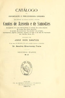 Catálogo da importante e preciosissima livraria que pertenceu aos notaveis escritores e bibliófilos Condes de Azevedo e de Samodães, enriquecido de no