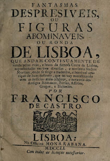 Fantasmas despresiveis, ou figuras abominaveis ou rondo de Lisboa : que andam continuamente de ronda pelas ruas, e becos da famosa corte de Lisboa, representadas em tres diversos, e terriveis sonhos mortaes, onde se finge a medonha, e horrivel apariçaõ de hum defunto, que os vay moralizando com as noticias mais celebres, e notaveis dos antigos romanos, persas, assirios, gregos, e sicionios (1751)