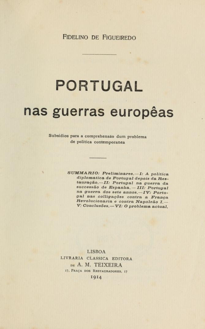 _: Portugal nas guerras europêas : subsidios para a comprehensão dum problema de politica contemporanea (1914)