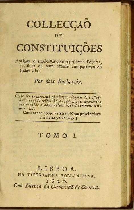 _: Colleccão de constituicões : antigas e modernas com o projecto d'outras seguidas de hum exame comparativo de todas ellas. (1820)