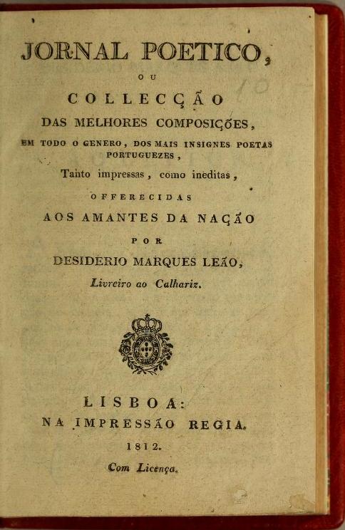 _: Jornal poetico, ou Collecção das melhores composições, em todo o genero, dos mais insignes poetas portuguezes, tanto impressas, como ineditas, (1812)