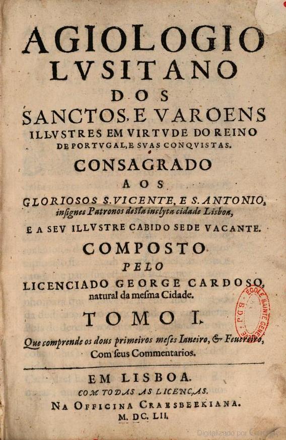 Agiologio lusitano dos sanctos e varoens illustres em virtude do reino de Portugal (1652)