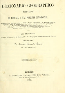 Diccionario geographico abreviado de Portugal e suas possessões ultramarinas : no qual se dá noticia de todas as cidades, villas, e freguezias, de Portugal, com sua população, legoas de distancia, correios, e feiras principaes : seus rios, montanhas, portos, &c. : e juntamente se descrevem todas as ilhas, e porções continentaes, animaes, minas, rios, portos, commercio, &c. &c. (1852)