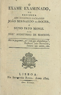 O Exame examinado, ou, Resposta aos senhores bachareis João Bernardo da Rocha, e Nuno Pato Moniz (1812)