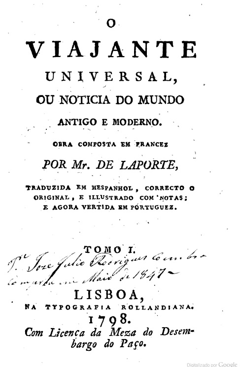 O viajante universal, ou Noticia do mundo antigo e moderno (1798)