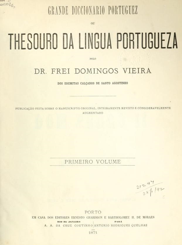Grande diccionario Portuguez; ou, Thesouro da lingua Portugueza (1871)