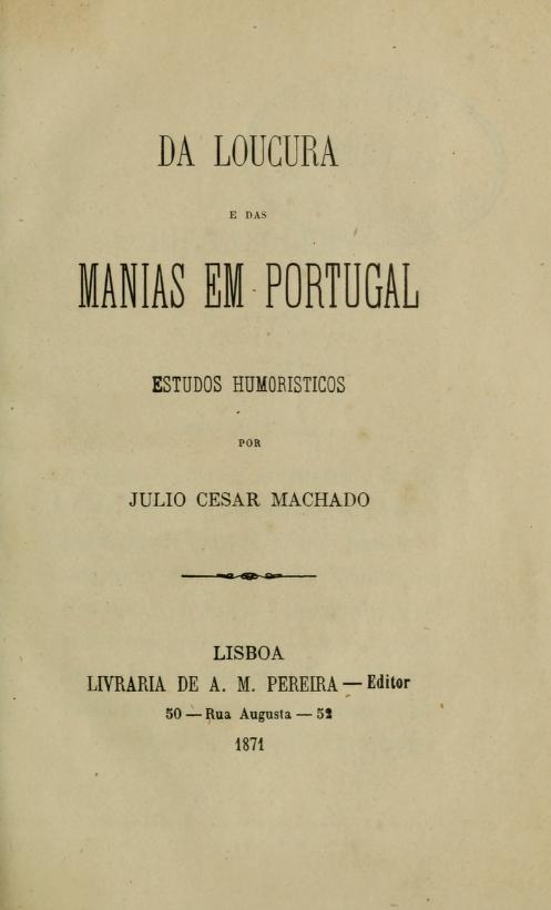 Da loucura e das manias em Portugal; estudos humorísticos (1871)