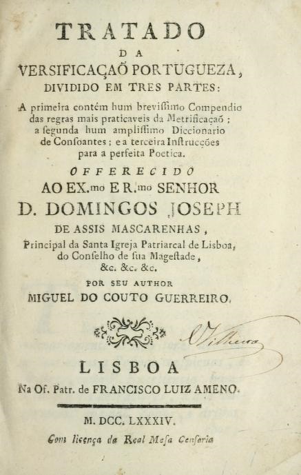 Tratado da versificaçaõ portugueza, dividido em tres partes ... (1784)