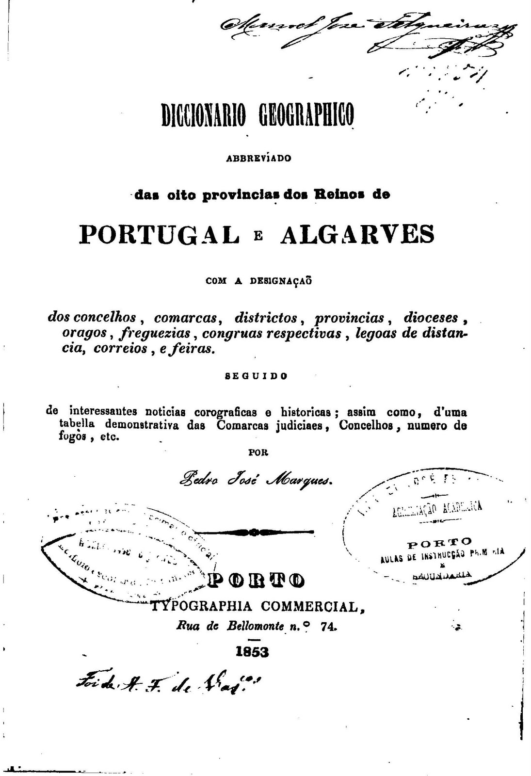 Diccionario geographico abbreviado das oito provincias dos reinos de Portugal e Algarves (1853)