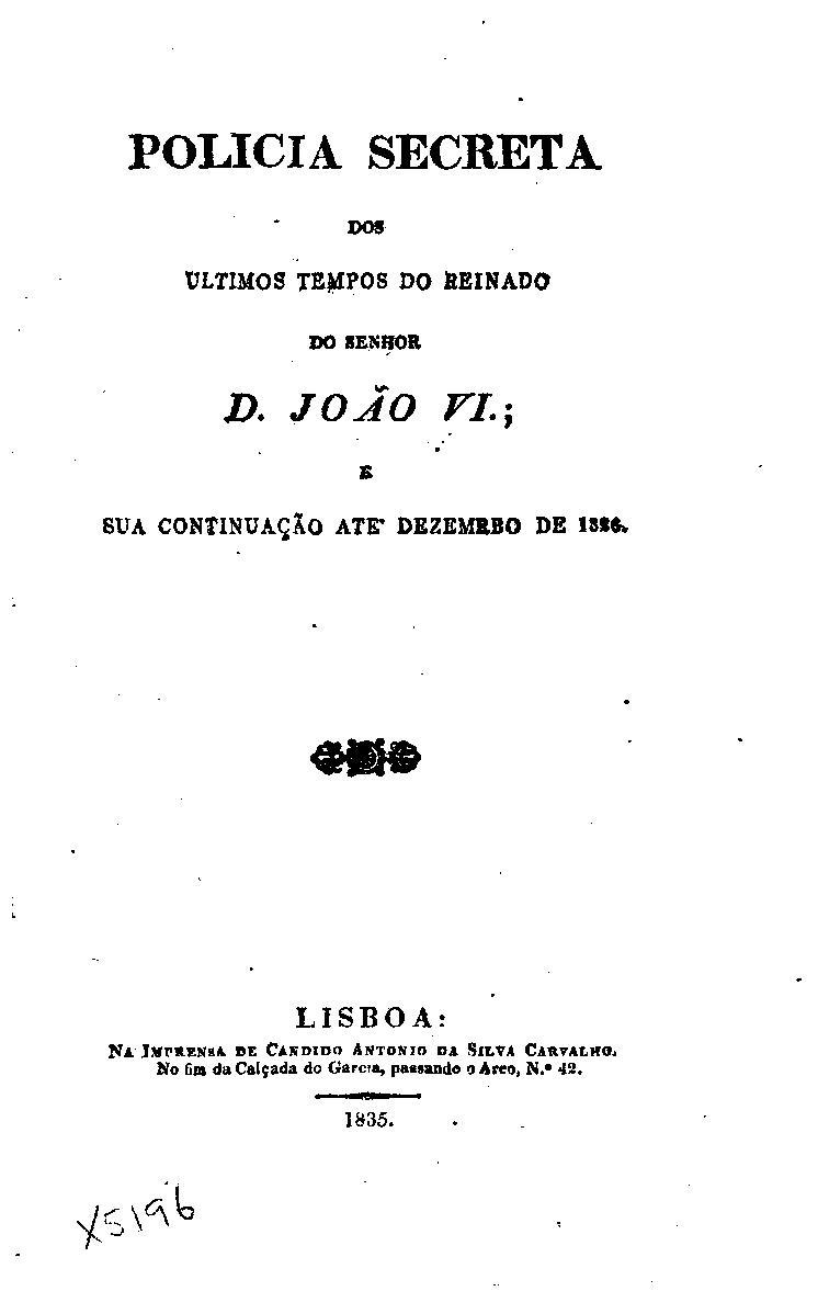 Policia secreta dos ultimos tempos do reinado do senhor d. João VI.; e sua continuação ate' dezemrbo [!] de 1826 (1835)