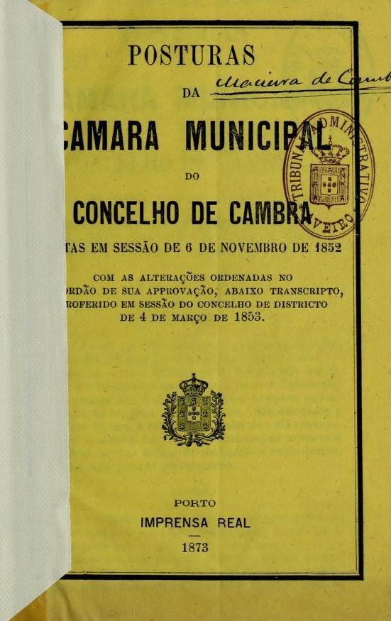 Posturas da Camara Municipal do Concelho de Cambra, feitos em sessão de 6 de novembro de 1852 (1873)