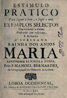 Estimulo pratico para seguir o bem, e fugir o mal : exemplos selectos das virtudes, e vicios : illustrados com reflexoens ... (1730)