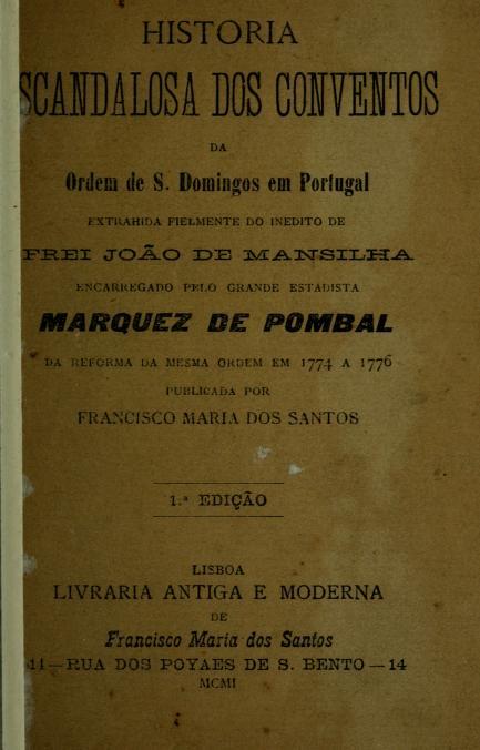 Historia escandalosa dos conventos da Ordem de S. Domingos em Portugal, extrahida fielmente do inedito de João de Mansilha, encarregado pelo grande estadista Marquez de Pombal da reforma da mesma ordem em 1774 a 1776 (1901)