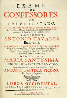Exame de confessores ou breve tratado em que discorrendo por todas as materias de theologia moral, se instrue hum sacerdote em ordem ao como se deve haver no confessionario (1734)